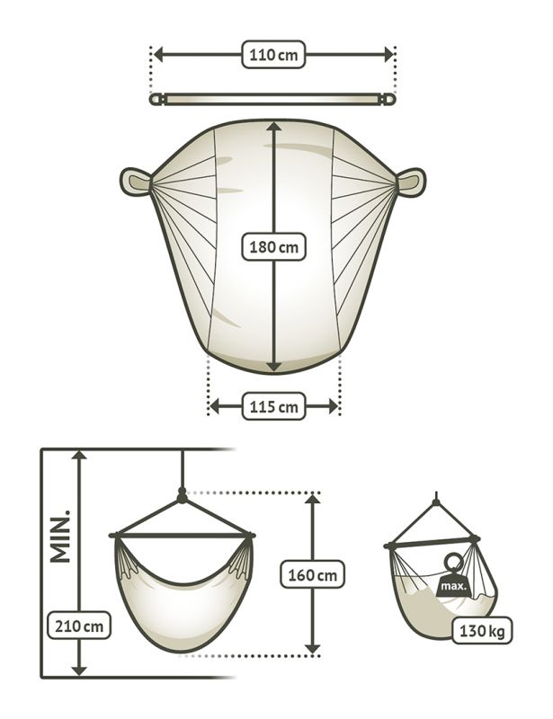 Hang La Siesta hammock chair Domingo so that it does not touch the floor, best at a height of 200 – 220 cm. If you want to hang it even higher, use an additional rope.